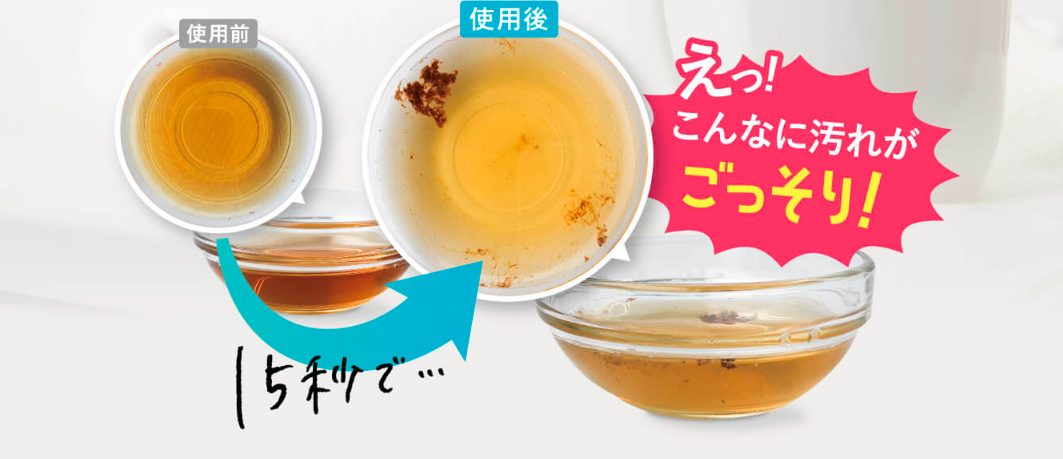 | 使った後の汚れは何ですか? | 細菌の餌となるたんぱく質を吸着して落としたものです |