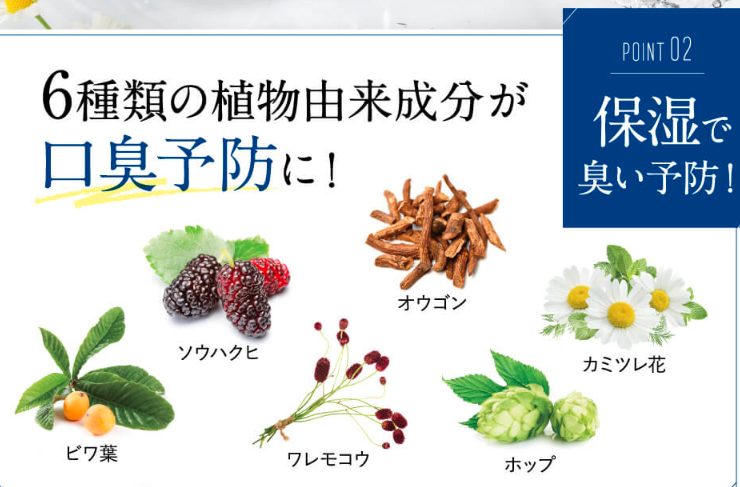| シメン-5-オール | 歯磨きでは落としきれない雑菌を スム済みまで殺菌、洗浄し口臭予防 |