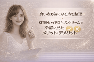 私自身の体験として感じたのは、 KITENハイドロキノンクリームは“急いで答えを出すケア”ではないということです。 高濃度という特徴を理解したうえで、 夜のケアとして丁寧に使い続けられる人には、 気持ちの面でも納得しやすいアイテムだと思いました。