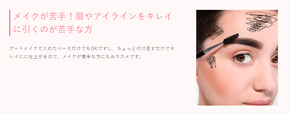 アートメイクで入れたベースだけでもOKですし、ちょっと付け足すだけでキレイにに仕上がるので、メイクが苦手な方にもおススメです。