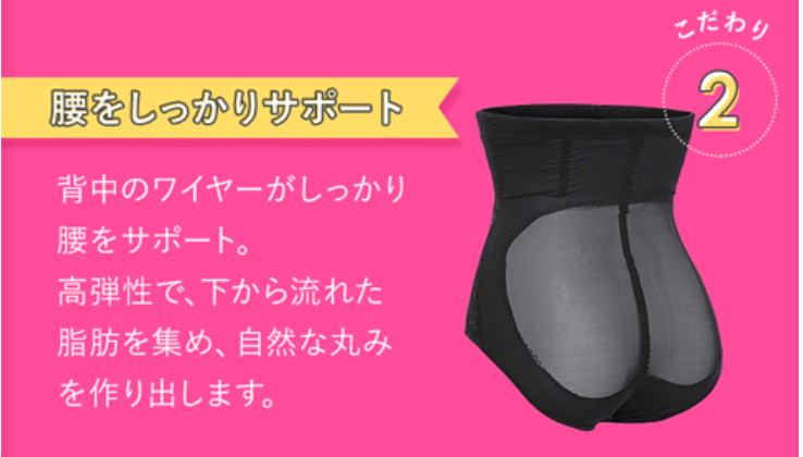 背中のワイヤーがしっかり腰をサポートして高弾性で下から流れた脂肪を集めて自然な丸みを作り出します★