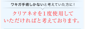ワキガ手術しかないと考えていた人にいちど、クリアネオを使用していただければと考えてます。
