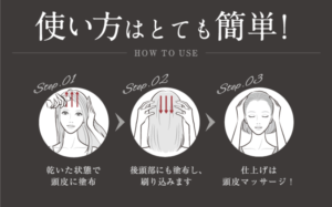 • 洗髪後、タオルドライした頭皮に直接スプレーまたは塗布。