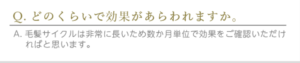[char no=”5″ char=”なつみ”] ヘアサイクルに合わせて、数ヶ月間は使い続ける必要があります✨