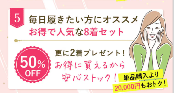 | 特典 | まとめ買いで割引価格4着セットで+1枚プレゼント 8着セットで+2枚プレゼント7日以内は交換可能 全額返金保証付き |