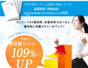 キュリーナexは、事前に着用試験で平均消費カロリー109%にアップしていると証明されてます✅