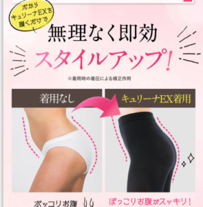 「キュリーナEX」は、ラインをすっきり見せることを目的とした補整インナー(着圧レギンス/ガードル系)として紹介されることが多いアイテムです。医療機器ではなく、体型や骨格を治療・矯正するものではありません。着用感・見え方には個人差があります。