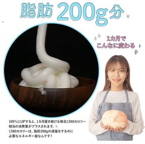 109%にUPすると、1か月履き続ける場合、1380カロリー相当の消費がプラスされます