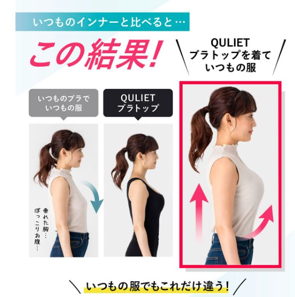 キュリエット ブラトップ(Quliet BraTop)は、バスト・ウエスト・姿勢の3つを同時にケアできる着圧ブラトップ。