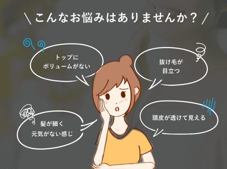 もしあなたがトップにボリュームがない、抜け毛が目立つ、髪が細く元気がない