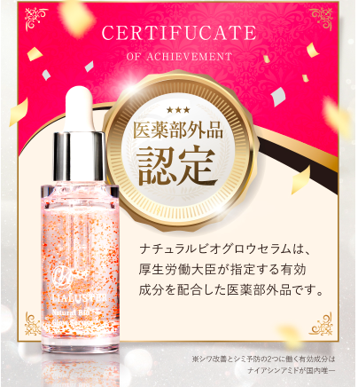 LIALUSTER(リアラスター) ナチュラルビオグロウセラムは医薬部外品認定