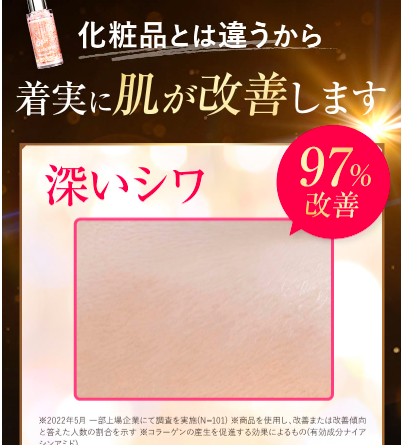 | ●今あるシワを改善 | 濃縮された 肌の奥深く 今あるシワを |