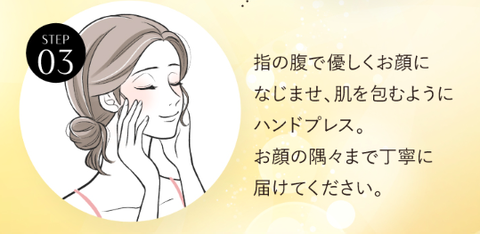 | ステップ③ | 指の腹で お顔の隅々まで |