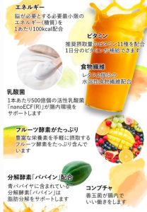 ナチュラルフローラ植物由来の発酵素材を中心に作られたドリンク。
