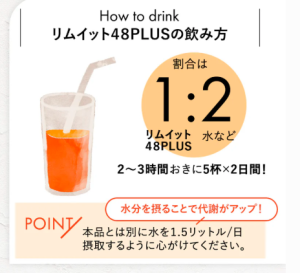 リムイット48は、2〜3時間おきに1杯ずつ飲むことで、1日合計5杯が目安になります。