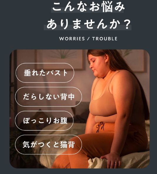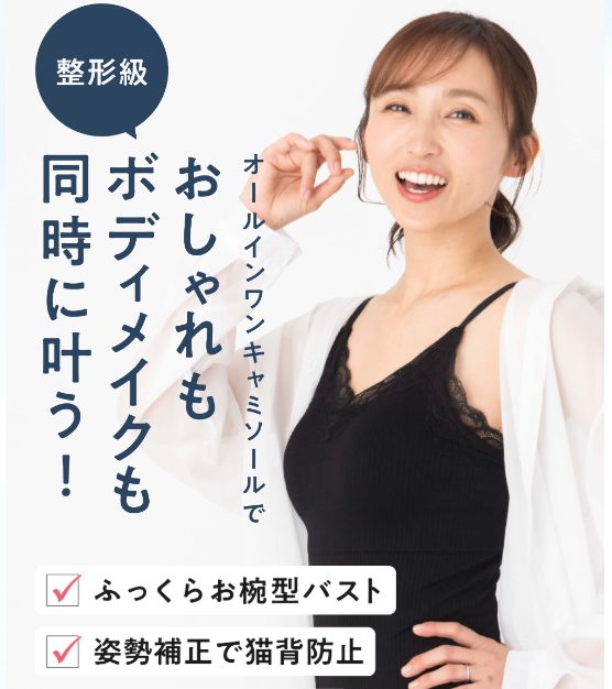 バストのたるみ、ポッコリお腹でお悩みの方にルメリアキャミソールがおすすめです