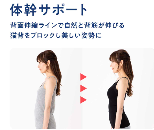 体幹サポートで、背面伸縮ラインで猫背をブロック