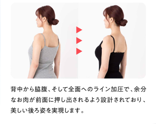 着圧ラインが脇に逃げたはみ肉をバストへ集め