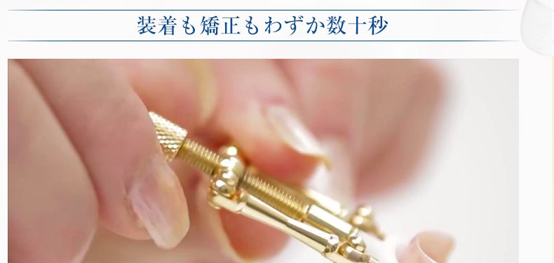 巻き爪ロボは、安全で誰でも使えるカンタン設計。いつでも好きな時間に、自分で巻き爪を治すことができます。装着は、フックを爪の両側に掛けて、ツマミを締めるだけ。矯正も、ゆっくりとツマミを締めていくだけです。慣れればわずか数十秒。カンタンだから、いつでも気軽に使いたいと思える。カンタンだから、巻き爪の矯正をより身近に感じることができるのです