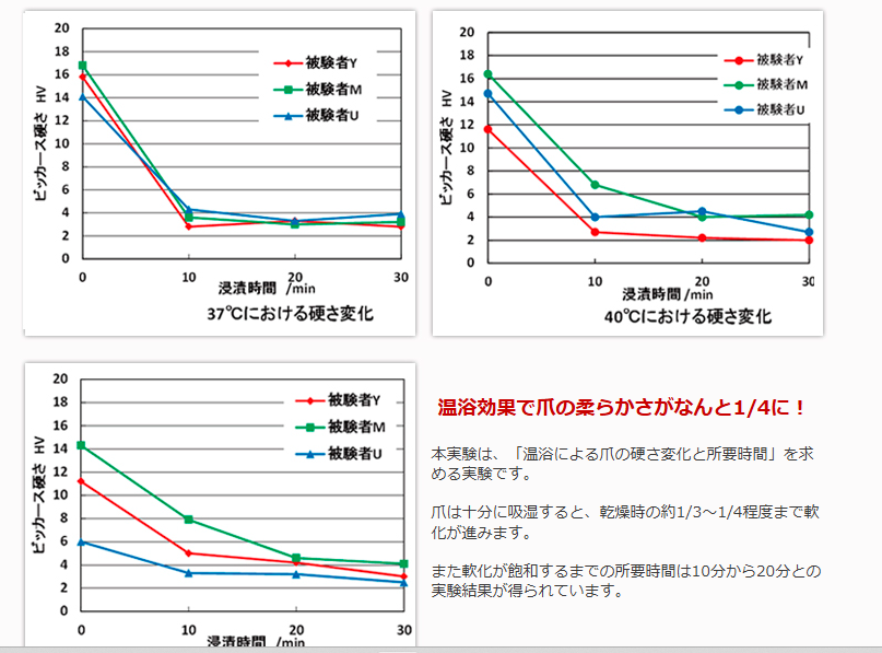 本実験は、「温浴による爪の硬さ変化と所要時間」を求める実験です。