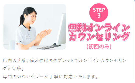 店内入店後、備え付けのタブレットでオンラインカウンセリングを実施。