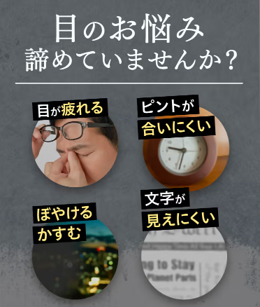 | ●かすみ・ぼやけ ●くっきりと見る力 ●目の疲労感 |