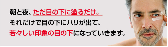 朝と夜にたための下に塗るだけそれだけで目の下にハリが出て若々しい印象の目の下になっていきます。 |
