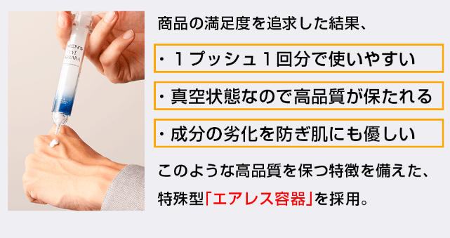 - 目元専用のアイテムでピンポイントケアが可能