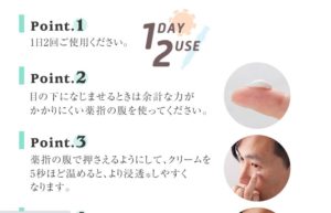 - 米粒程度を指先に取り、目元になじませる