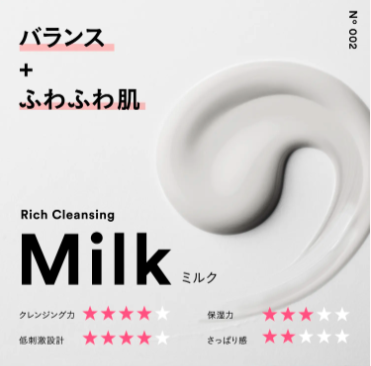 初めにミルクをお使いください。その後、より「クレンジング力が欲しい方」はオイル。より「さっぱりさせたい方」はジェル。より「保湿力が欲しい方」はバターを試してみてください。そこで気になったタイプを数日間連続してお使いいただくと、さらにご自身の肌との相性がわかりやすいと思います。