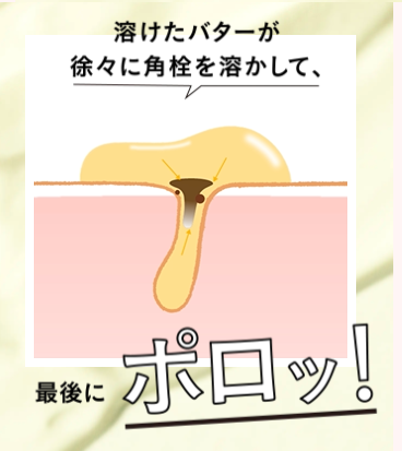 バターは乳化のしかた次第でクレンジング力が大きく変わります。バターを顔に馴染ませたあと、十分乳化しないまま水で洗い流してしまうと、バターの油と水が混ざりあわず、バターの油膜が水を弾いてしまいます。この状態ではクレンジング力が十分に発揮されず、マスカラやアイシャドウが残ってしまいます。