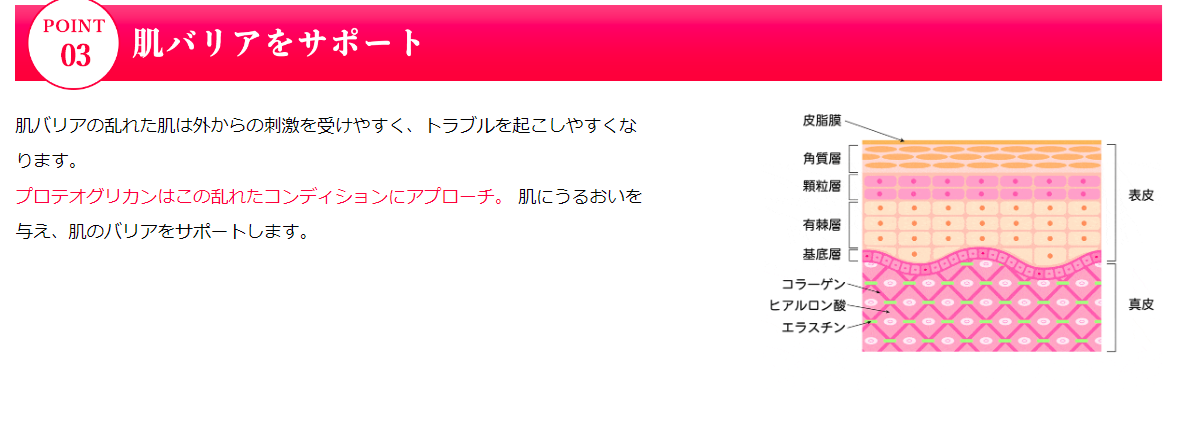 プロテオグリカン、セラミド、ヒアルロン酸のトリプル処方