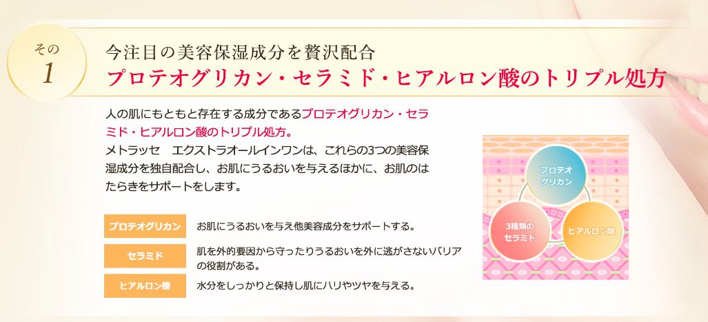 - 7 メトラッセエクストラオールインワンは、プロテオグリカンに注目