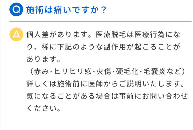 医療脱毛は医療行為にあたるため、医師の管理下で施術を受けられるのが大きな安心材料です。