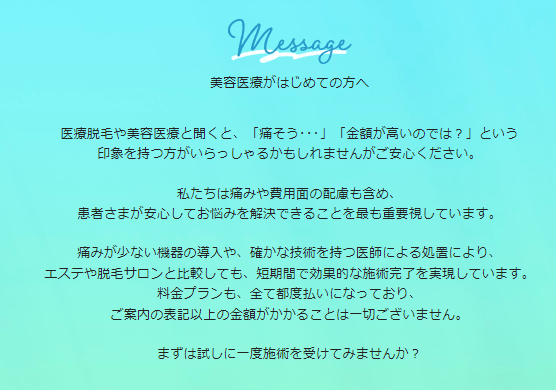 医療脱毛や美容医療と聞くと、「痛そう・・・」「金額が高いのでは?」という