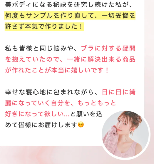 寝ている間もしっかりホールドしてくれるし、おかげさまでハリのある綺麗なバストになれたみたい🌞[/char]
