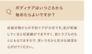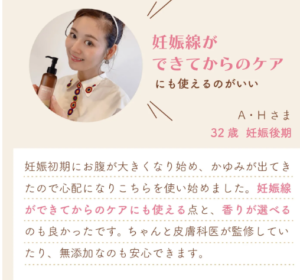 [char no=”5″ char=”なつみ”]私の場合はもう妊娠線ができてしまってからのケアに使い始めました。