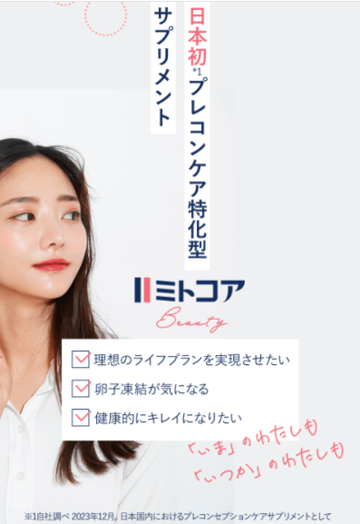 ミトコアBeautyは、妊娠を希望する前の段階=プレコンセプションケアに着目した栄養補助食品です。