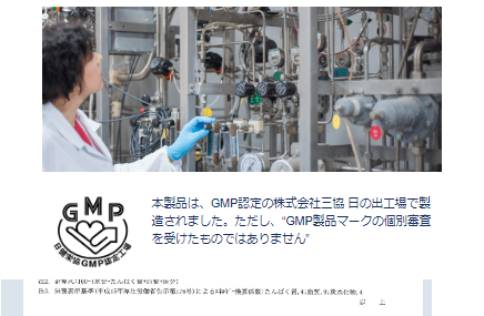 GMP認定工場で品質管理が徹底即効性や治療的効果を期待するものではない