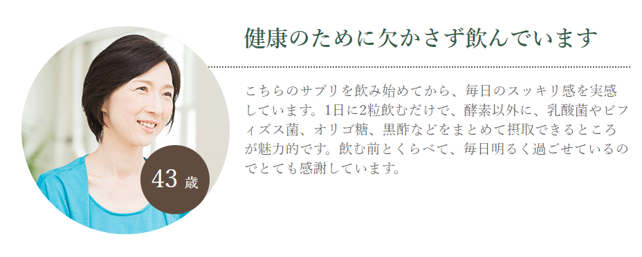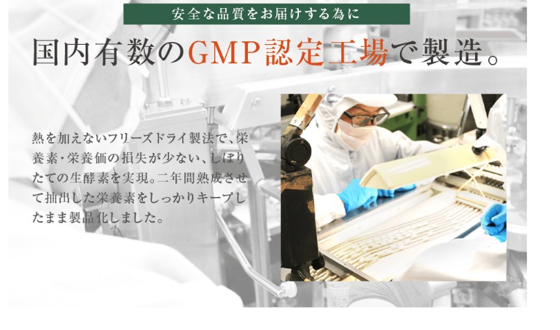 - 植物発酵エキスを用いたサプリ。摂取目安量はパッケージを厳守。