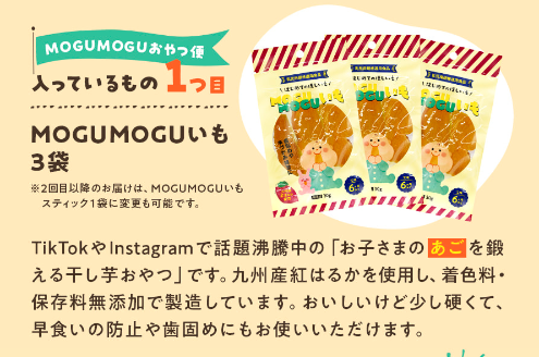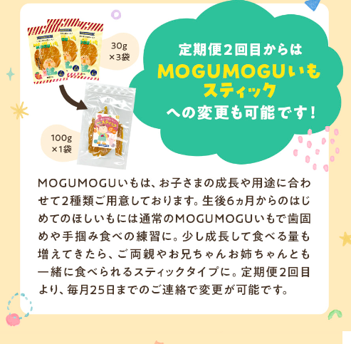 定期便2回目からはMOGUMOGUいもステックに変更も可能です