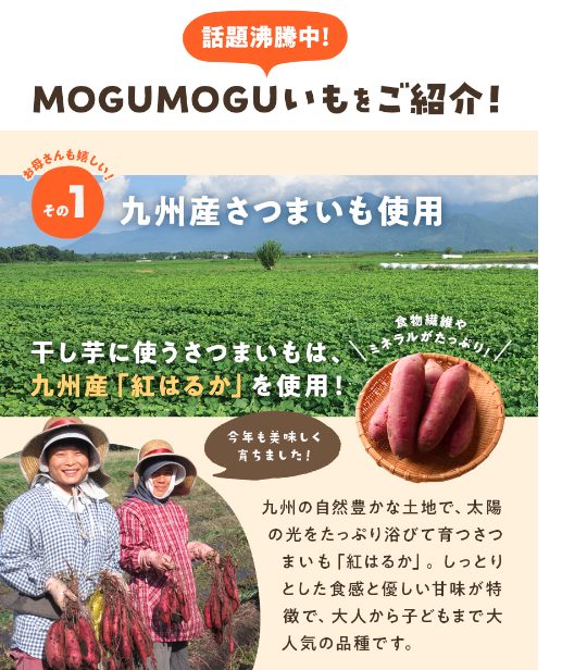 九州産の紅はるかを100%使用し、砂糖や保存料は一切不使用。