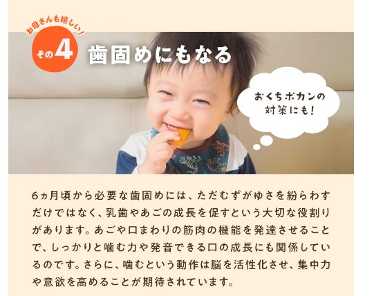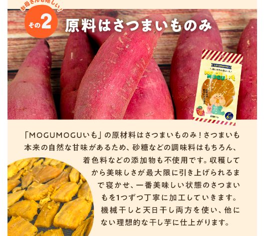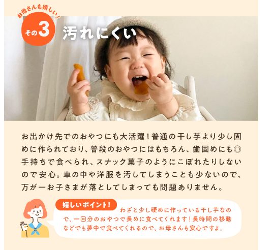 そんなママたちの声に応えてくれるのが、「もぐもぐイモ」なんです。