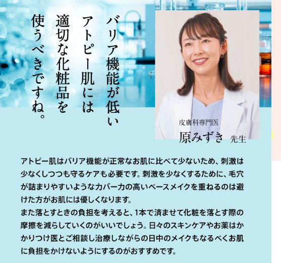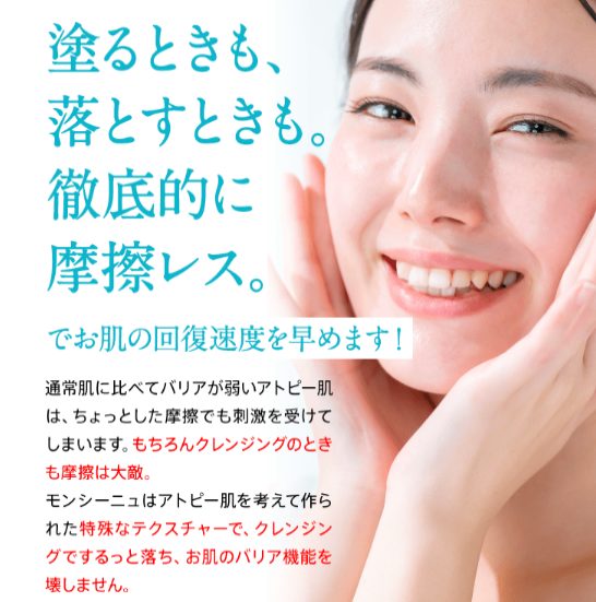 | メリット | 医療用同質のアトピー肌のことを考えた 塗るときも落とすときも摩擦レス |