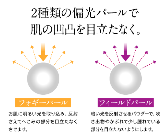 | フォギーパール | お肌に耀く光を取りこみ 反射させて凹み部分を目立たなくさせる |