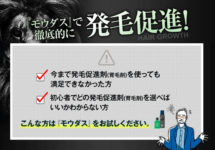 モウダスなら自信を取り戻せるモウダスの根幹を成す5種の発毛促進有効成分で徹底的にアプローチ