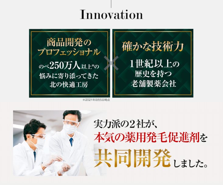 北の快適工房確かな技術力 1世紀以上の歴史を持つ老舗製薬会社 実力派の2社が本気の薬用発毛剤を