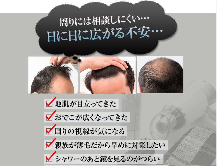 | おすすめの人 | 地肌が目立ってきた おでこが広くなってきた 周りの視線が気になる 親族が薄毛だから早めに対策をしたい 今まで育毛剤を使っても満足できなかった 初心者なので度の育毛剤を使えばいいかわからない |