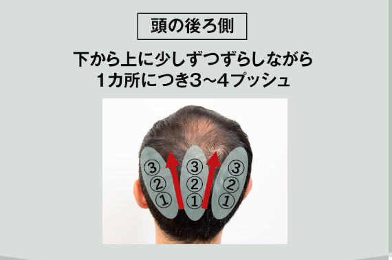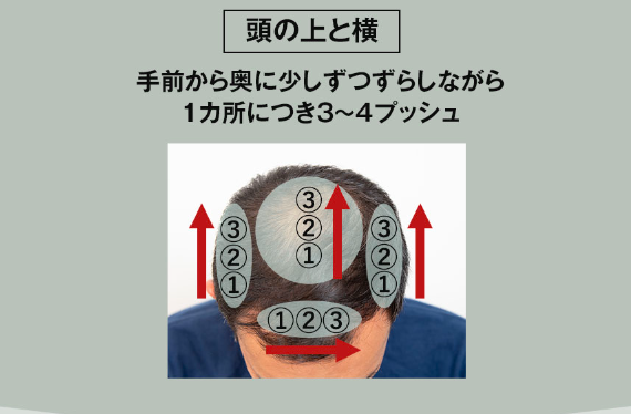 1か所につき3-4プッシュ頭皮全体をマッサージ