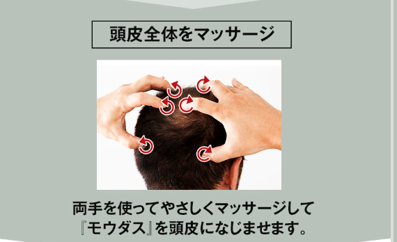 モウダスを頭皮に馴染ませます\初回52%OFF/